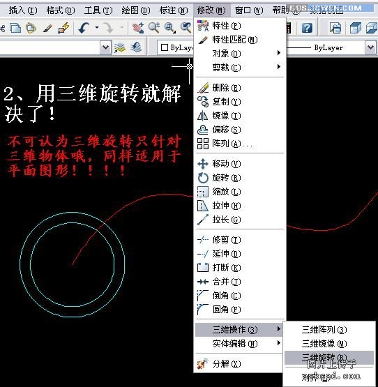 这一集就到此,一个要注意的是,三维命令中"三维旋转、阵列、镜像、对齐",切记不能认为这只是针对三维物体哦!!而是同样适用于平面上线条,有时用这几个命令能起到事半功倍的效果!!