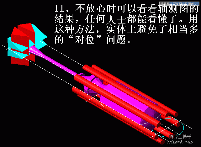 二、用好"点过滤",点过滤的作用在三维中尤其重要,刚开始时初学朋友不容易体会到这点。在第10集,我已经举个运用"点过滤"的例子,就是三点"剖切"实体的方法,用点过滤就非常方便地在一个视图中是找到三点。有朋友不明白我在前几种用点过滤垂直剖切的方法,这里就更详细地介绍一下。