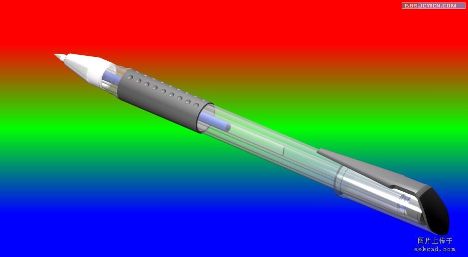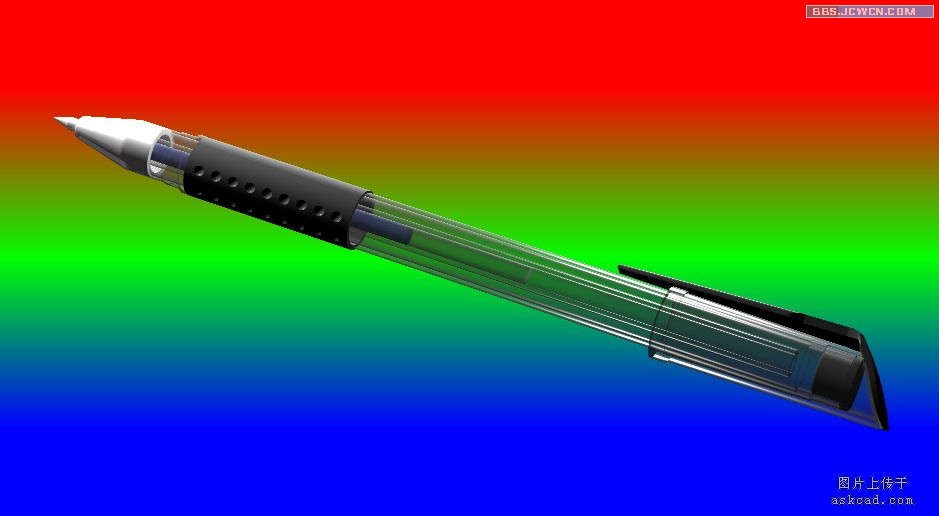 当然有些项目可以增加调整,有些也可以简化,比如下面这只圆珠笔没有用阴影也是可以的(此图以前上传过,那张渲染太简略了,可作为反面教材来看)。