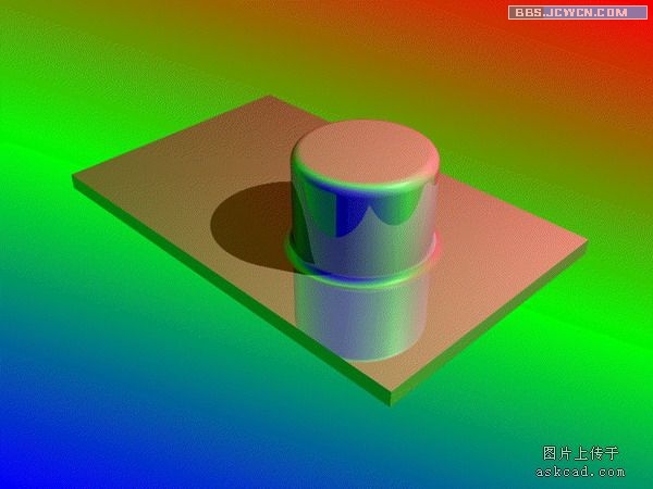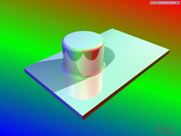 答:这个是有影响的,比如说你是用光线跟踪渲染,光线通常要反射背景的图案,这是其一。通常情况下,系统是默认为黑色的,这样渲染结果发暗,适合于夜间模式,比如说我前几集中的渲染是没有背景的(即黑色的背景)。如果换成浅灰色,结果又不一样。如下图一个试验,用的是渐变色,材质上的反光设置的较高,就是这种效果,受背景影响相当的大。当然要想不受干扰,也是可以在材质对话框中设置的。