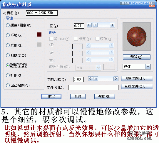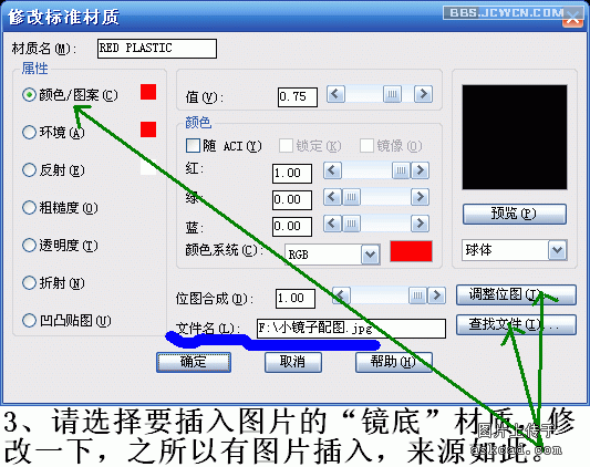 加一种材质了。再如下图这种有点"铸铁"效果的材质,在cad中没有现成一模一样的,可用一种材质为蓝本,用"凹凸贴图"制造的表面不平。