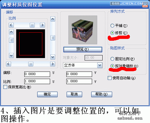 8、材质是否要修改和复制?是否要加入贴图?这时可以加入插图。