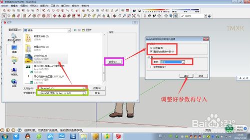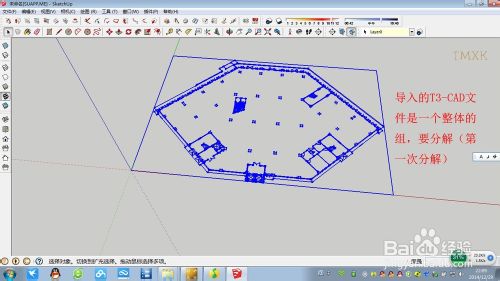 导入SU,单位要为mm。因为cad图问题变大,按照0.1、0.01等比例缩小。