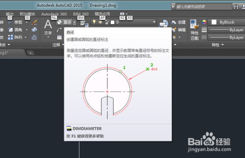 1、标注命令都位于绘图窗口上方的注释工具条内,把鼠标放到圆标注上面,可以显示其定义;
