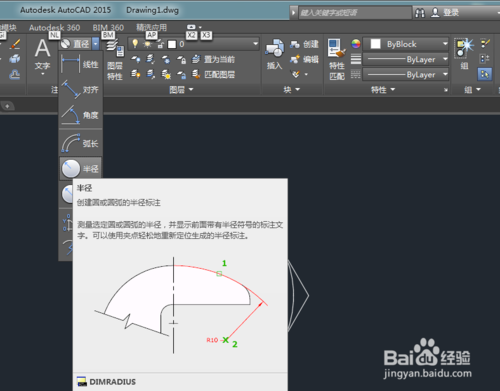 4、半径标注与直径标注其最基本的区别在于显示的数值不一样,半径标注是以R开头,而直径标注是以直径符号开头,下图为半径的定义;