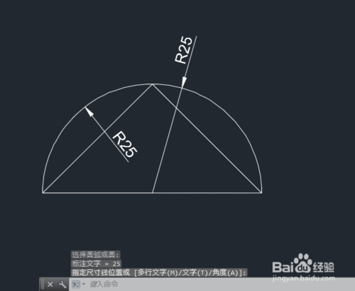 5、在执行半径标注后,其命令行提示的数值与直径一样;