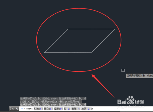 通过使用TR(修剪命令),剪掉多余、不需要的线,这样一个平行四边形的几何图形就绘制完成了。