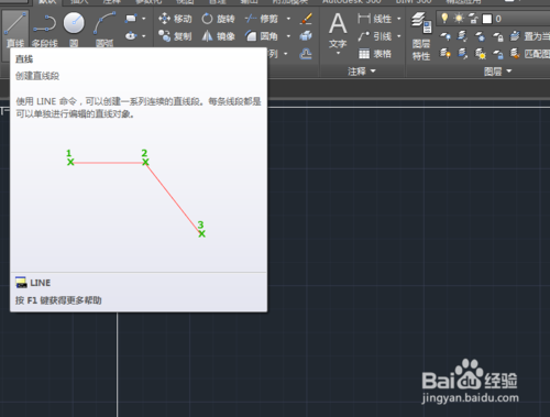 使用画直线命令(line)绘制出两水平直线;图1是直线的定义,图2是绘制出的结果;