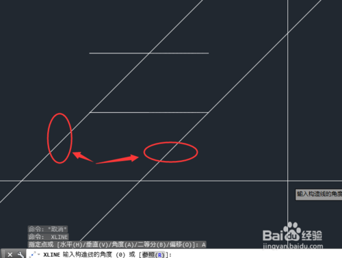 使用构造绘制45度的线,用来作平行四边形的两斜边;(关于平行四边形的角度,自己按图纸要求给数值就好了,我这是演示,就以45度为例)