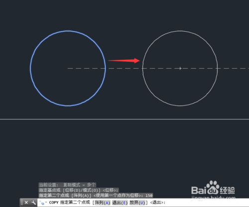 3、为了更好的说明内外切六边形,使用co(复制命令)把步骤2绘制的圆复制一个出来;