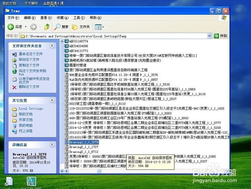 2、找到这个图纸文件:打开“我的电脑”—打开“C盘”—打开“Documents and Settings”文件夹—打开“登录名”文件夹,一般是“Administrator”文件夹—打开“Local Settings”文件夹—打开“Temp”文件夹—找到自己所画的图纸名称SV$图标,如文件“Drawing1_1_1_3279”,如右图: