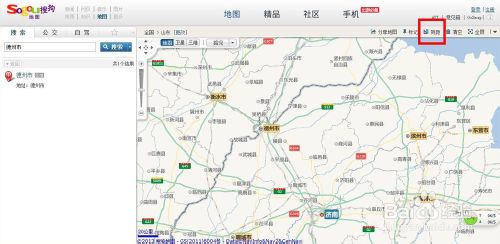 打开一个网络地图,建议使用搜-狗-地图,简陋,但适用。如图,找到“测距”命令。