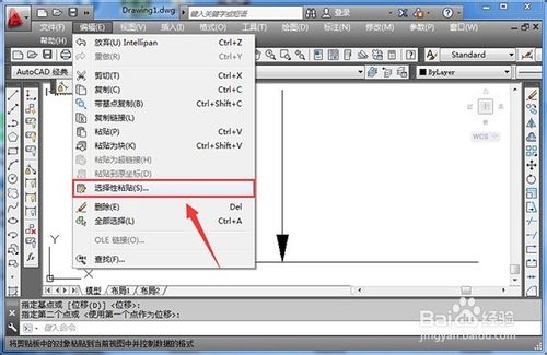 3、在AutoCAD中点击“编辑”,“选择性粘贴”: