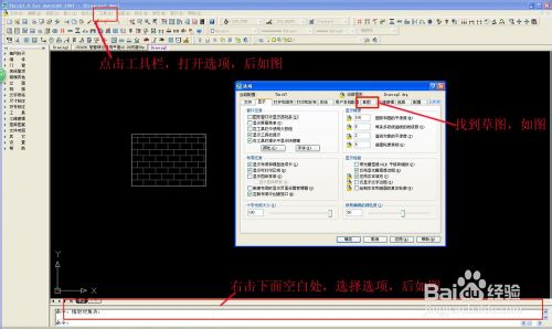 二,1如图所示,在窗口工具栏,打开找到选项,打开如图。或者在最下方空白处,右击找到选项。打开如图。在选项窗口,找到草图,如图所示。