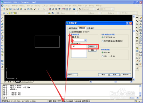 4、移动鼠标,扑捉刚设定的角度