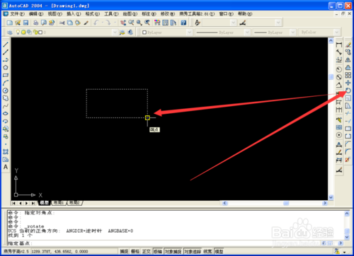 3、点击旋转命令,选取旋转中心