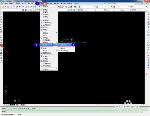 将图中的三部分全部选中,使用菜单栏【绘图】工具中的【创建块】或者左侧工具栏中的【创建块】或者输入创建块命令B,将选中的三部分创建为块。