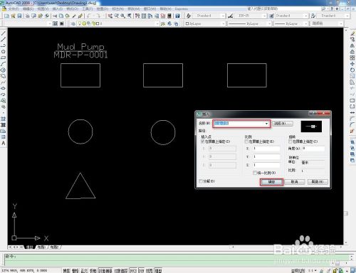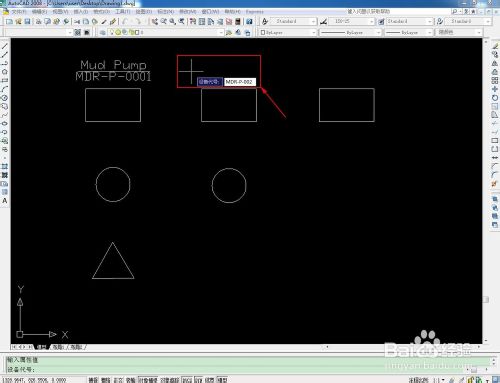 退出“插入窗口”后,在绘图区制定块的插入点,然后依次输入设备代号和设备名称。