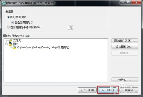 “数据提取-定义数据源”窗口,各项保持默认,点击“下一步”。