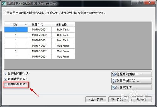 在“数据提取-优化数据”窗口,取消对“显示名称列”的选择,点击“下一步”。
