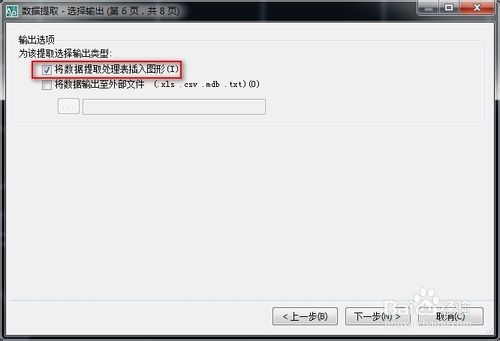 在“数据提取-选择输出”窗口中,选择第一项,点击“下一步”。