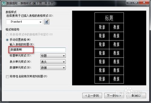 在“数据提取-表格样式”窗口的“输入表格的标题”一项,填写表格的标题,点击“下一步”。
