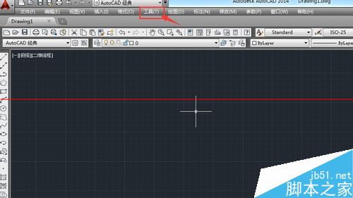 3、大约有1分钟就可运行CAD2014,进行CAD的绘图界面,在菜单里选工具