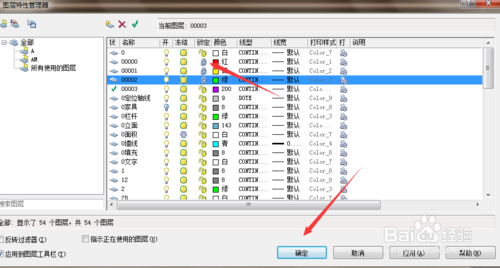 7、当这个图层被修改完成之后,可以重新进入“图层特性管理器”解锁图层,或者锁定其他图层,对其他图层进行修改。