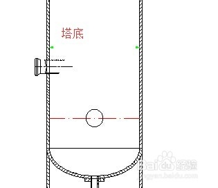 4、我一般是先根据比例和塔高画出我们塔设备的塔底和塔顶,再画整个塔设备。