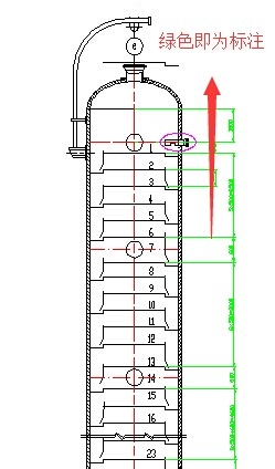 7、标注完成后,我们需要对塔设备的部件进行标号,并表示的CAD图纸里面。我一般如图的方式标注。