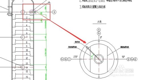 8、最后,我们需要对一些焊缝或者无法表示清楚的图形用局部放大图表示。如图,我们选择的是塔顶的俯视图。这样仔细检查一遍,我们就完成了自己的塔设备总图。