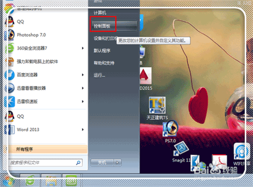 这里因为CAD2015联网问题,会花费一定时间,首先禁掉。点击“开始”——“控制面板”。