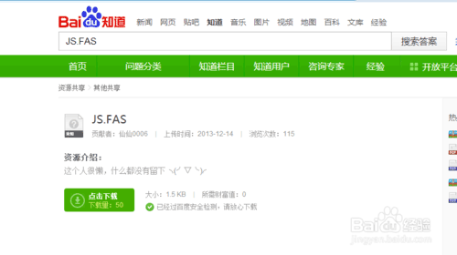 在浏览器中复制引号内内容“JS.FAS",粘贴到浏览器中,进行搜索,然后下载该文件。