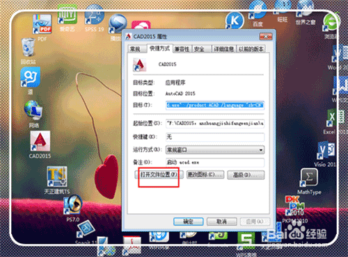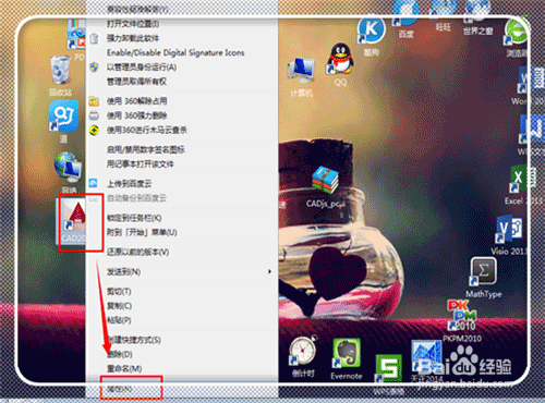 右键点击”CAD2015",或者是其他版本的图标。点击“属性”。