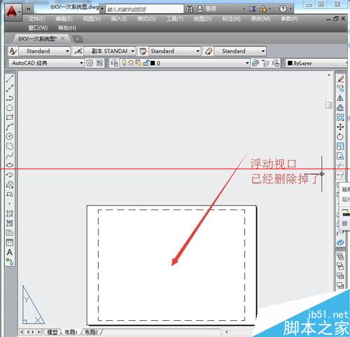 4、然后直接删除浮动视口边界线,点Delete键删除后就没有了
