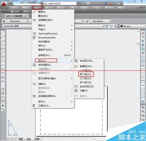 5、然后在菜单视图中选择视口项,新建两个视口