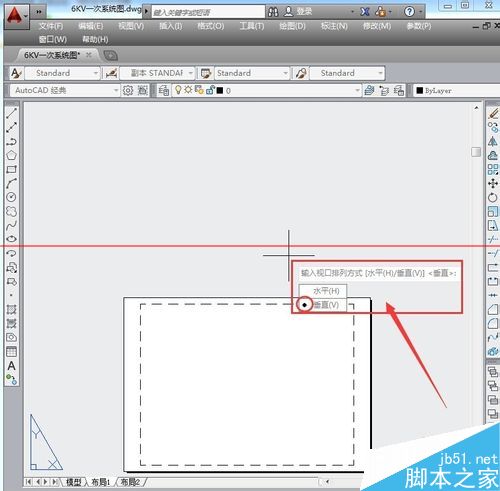 6、弹出两个视口的选项对话框,是水平排列还是垂直排列,在这儿我选择垂直