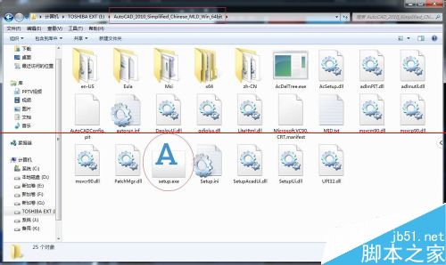 1、解压64位AutoCAD2010中文简体版安装包,找到如下图中的setup.exe文件;