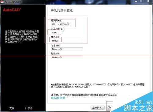 4、过个几秒钟,出现新的界面,选择“我接受”,点击下一步,出现新的界面,序列号和密钥按照下列图中输入,姓氏根据自己喜好填写,如下各图所示;