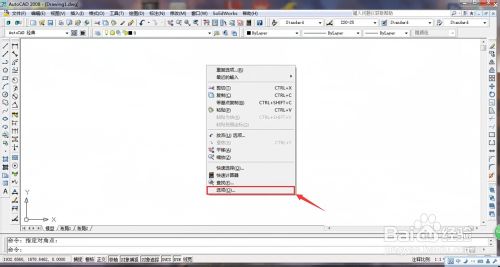 1、在cad图纸空白处单机右键,选择选项。