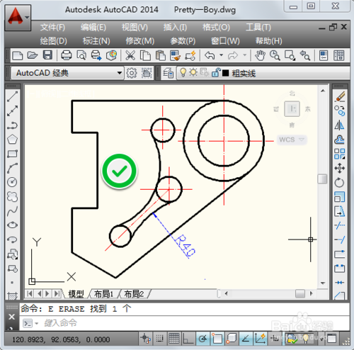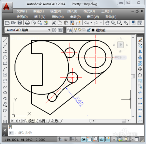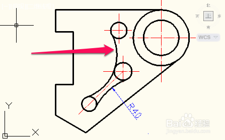 1、用cad画圆弧时如果已经知道半径,那么就更简单了。如图所画的圆弧,相切于两个圆,半径是40,此时cad怎么画圆弧呢?