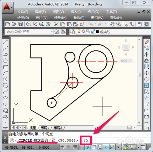 5、根据命令行提示,直接输入圆的半径,这里是40,然后回车确定。