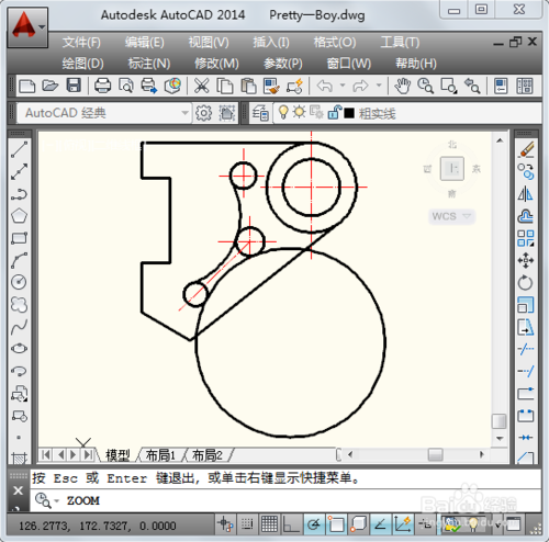 1、用cad画圆弧时如果不知道半径,那么就要想办法找出圆弧经过的点。如图所画的圆弧,只知道和3个圆形相切,此时cad怎么画圆弧呢?