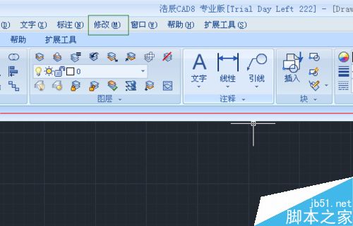 4、在较老的CAD版本的标题中,可以在标题栏中找到“修改”,里面就有个特性匹配