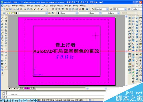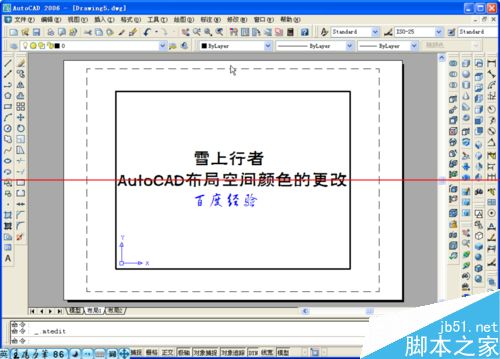 6、返回绘图环境的模型空间,可以看到模型布局的颜色已经被更改过来了。