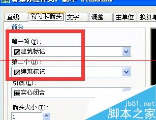 4、在“符号和箭头”选项卡中选择“建筑箭头”如图所示。