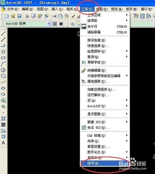 在菜单栏上,“工具”——“选项”。