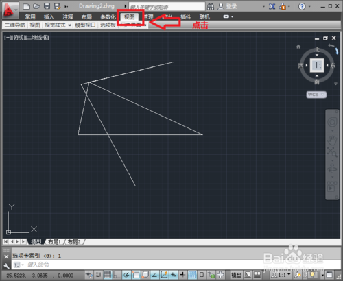 首先打开CAD软件,点击菜单栏上的“视图”按钮,即会在下方弹出选项“用户界面”