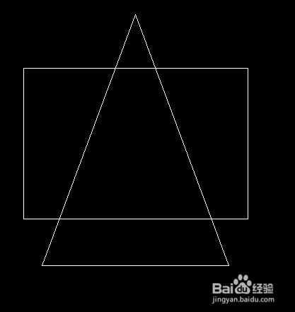 2、采用wipeout命令就可以创建一个整体覆盖面。首先我向大家讲解一下WIPEOUT命令,WIPEOUT其实就是创建一整块面,用于遮盖其他图层,当然选择后置也可以被遮盖。现在我们用wipeout命令创建一个三角形的面来遮盖矩形,在命令栏中输入wipeout,回车,将三角形重新绘制一遍,完成如图所示。