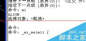 8、选择对象,在命令行中输入AL命令,如图所示。